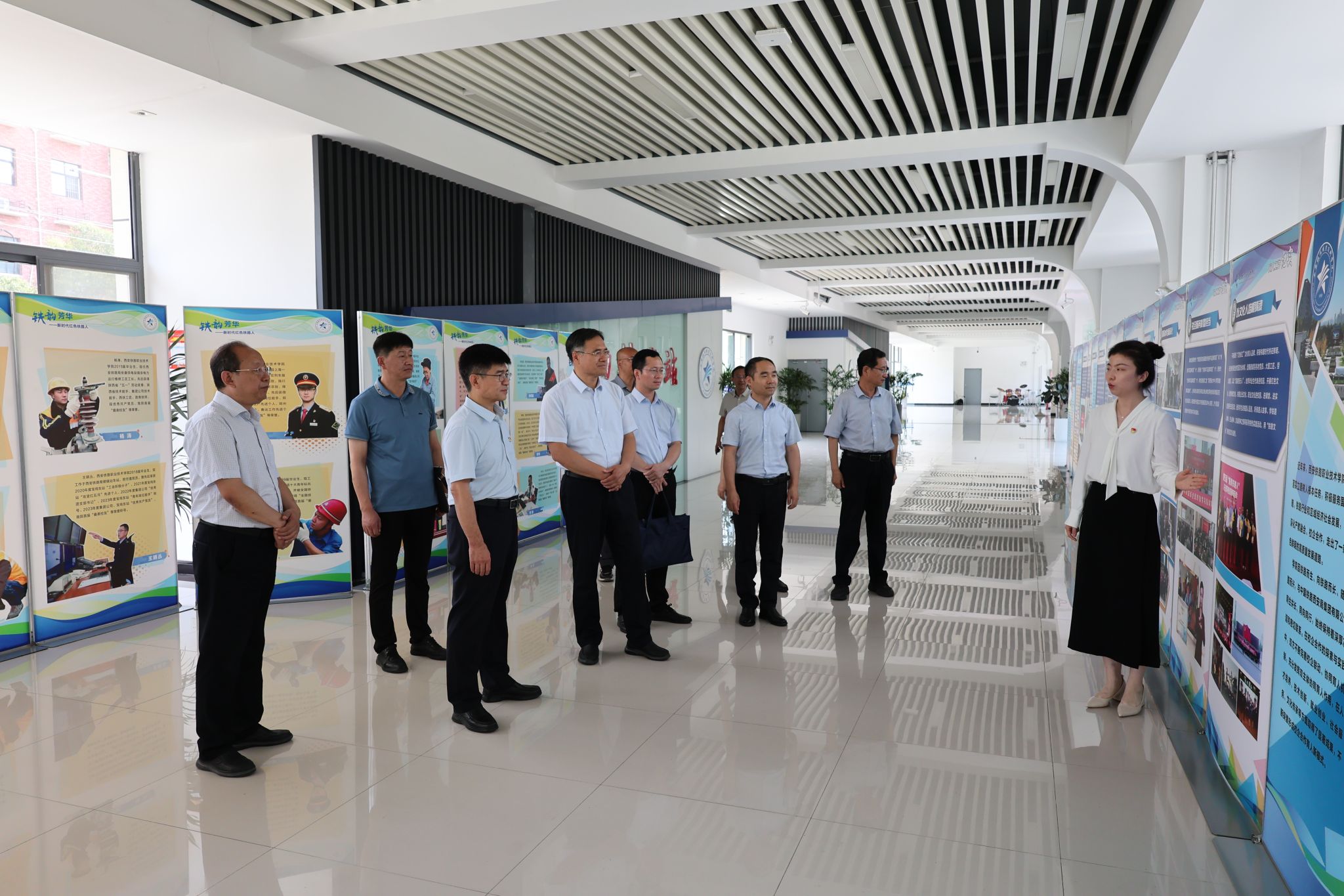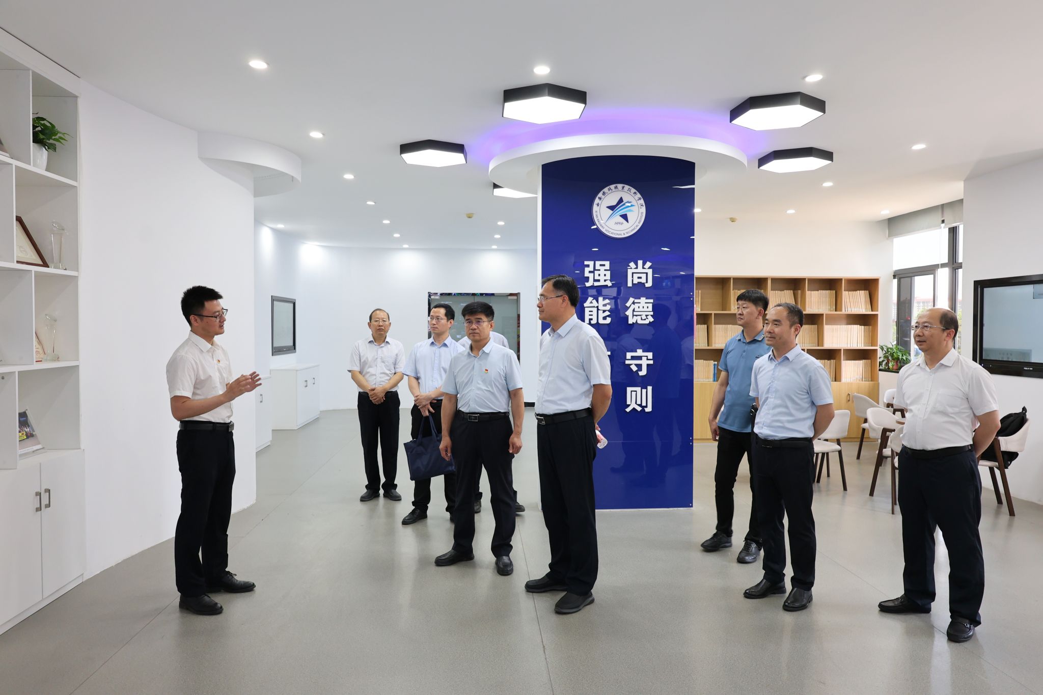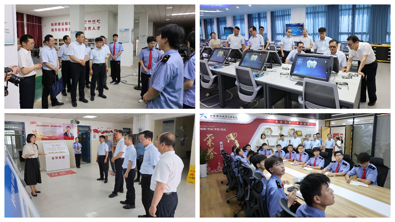 在学院院长赵春平、党委副书记任治军陪同下,涂义才一行参观了学院轨道交通综合演练场、国家级虚拟仿真实训中心、“复兴号”高铁模拟驾驶实训室和“精工书院”一站式学生社区,并与正在实训的师生亲切交流。教育部和省教育厅领导们对贝博官网鲜明的专业特色和紧贴行业前沿、精良完善的实训设施赞不绝口,对贝博官网“半军事化”特色学生管理模式、“一站式”学生社区建设理念和育人成效给予了高度评价。