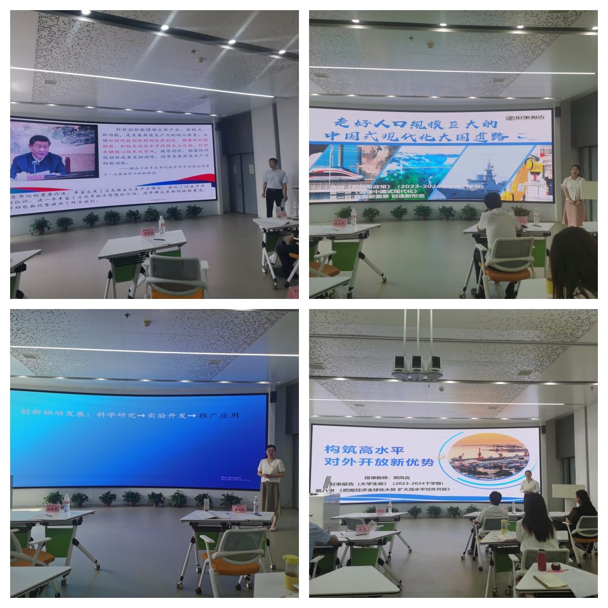 校赛前期,各教研室充分动员教师,组织集体备课、积极研讨、全员遴选,本次共有13名教师被推荐参加校赛。严格按照陕西学校思政课程教师“大练兵”主题活动的通知要求,以4门思政课程内容为基础,分思政课程和师生团队2个单元进行。选手们依据思政课教材,围绕坚定理想信念、对外开放、中国式现代化等主题,依托数字化、信息化手段,采用灵活多变的教学方法,选取典型案例阐释理论,语言流畅凝练,思路清晰明确,展现了贝博官网思政课教师深厚的理论功底和高超的教学水平。