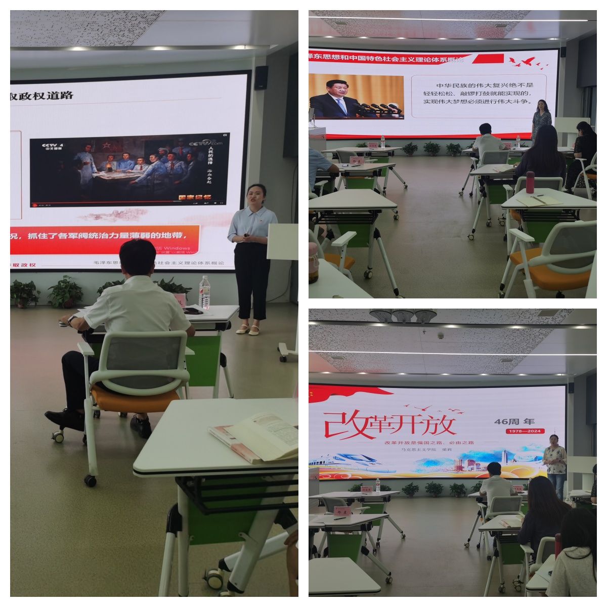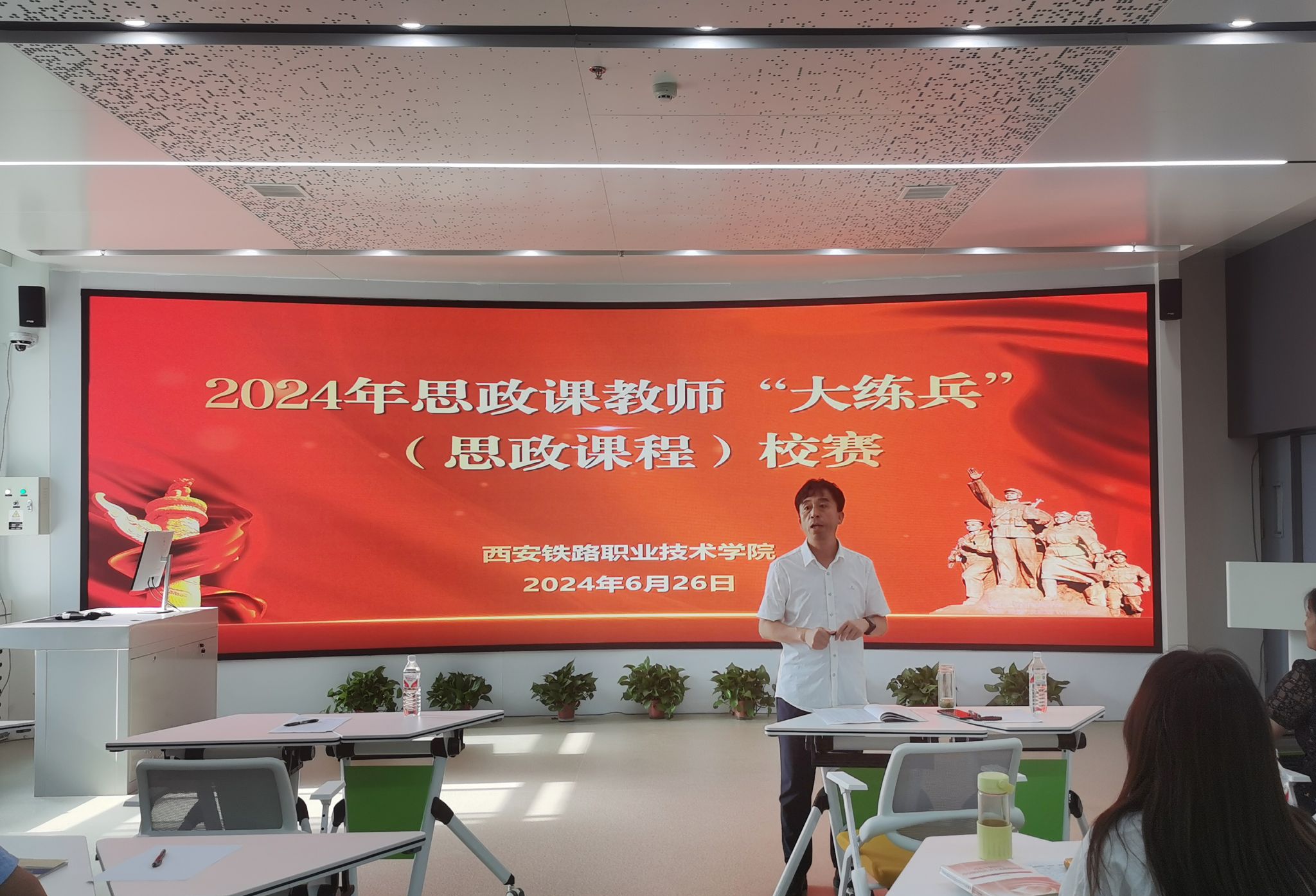 为深入学习贯彻习近平总书记在新时代学校思政课建设推进会上的重要指示,按照《关于开展2024年陕西学校思政课程课程思政教师“大练兵”主题活动的通知》(陕教工宣办〔2024〕10号)和学校《2024年思政课教师“大练兵”(思政课程)校赛通知》的安排,进一步提升思政课教师的教学能力和业务水平。6月26日,由马克思主义学院承办的2024年思政课教师“大练兵”(思政课程)校赛在港务校区举行。马克思主义学院全体教师参加活动,学院党委副书记任治军出席此次活动。