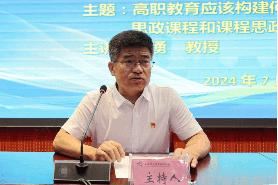 孙湧教授在两天时间里一共进行了三场报告,分别是7月12日下午的“高职院校迎接新‘双高’遴选应该注意的关键点和教师危机意识”、7月14日的“高职教育应该构建何种课程体系,如何实施思政课程和课程思政”、“高职院校产教融合的关键要素”。