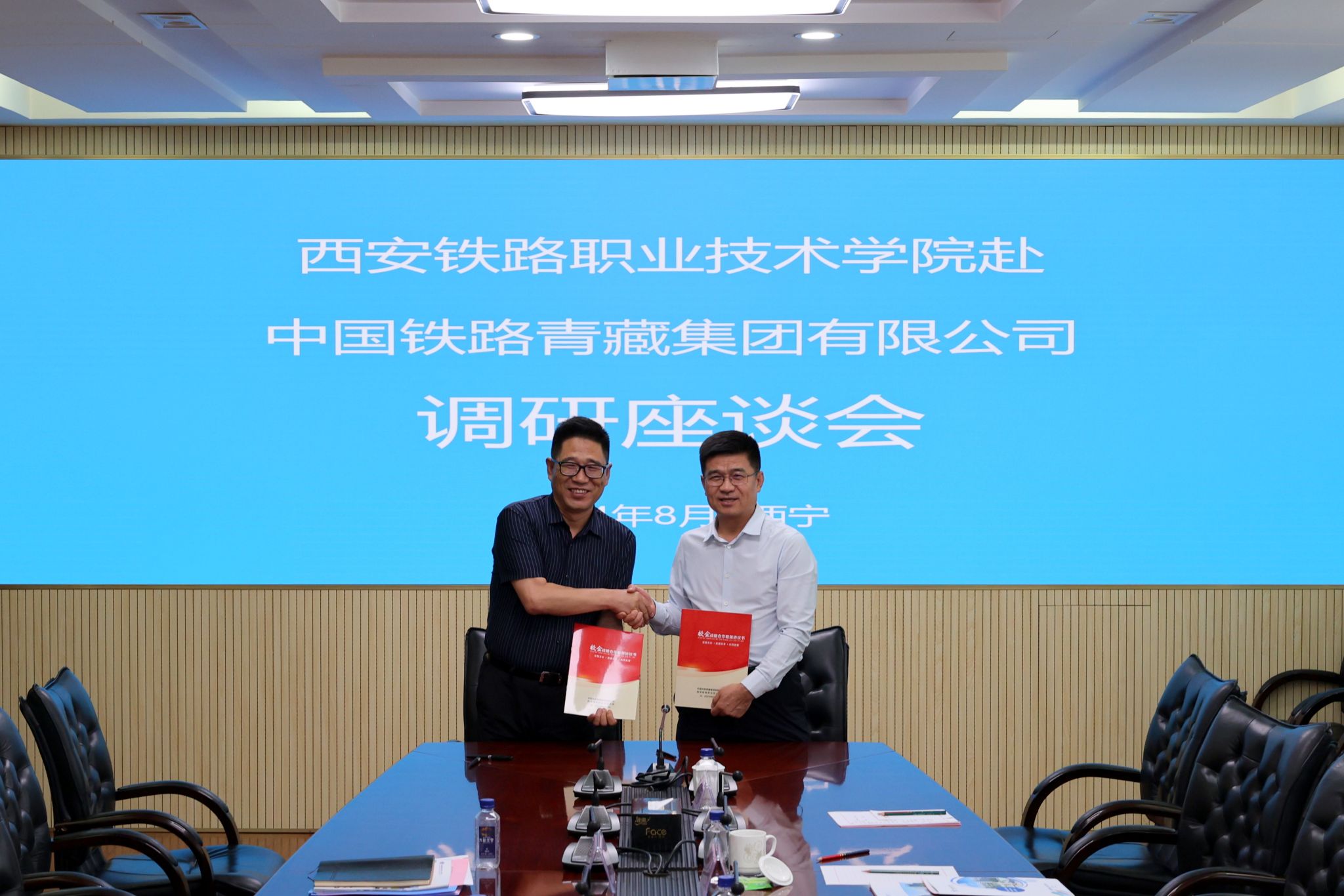 座谈会前,赵春平与中国铁路青藏集团公司党委书记、董事长李育宏进行了交流,就加深校企进一步合作进行了探讨并交换了意见。