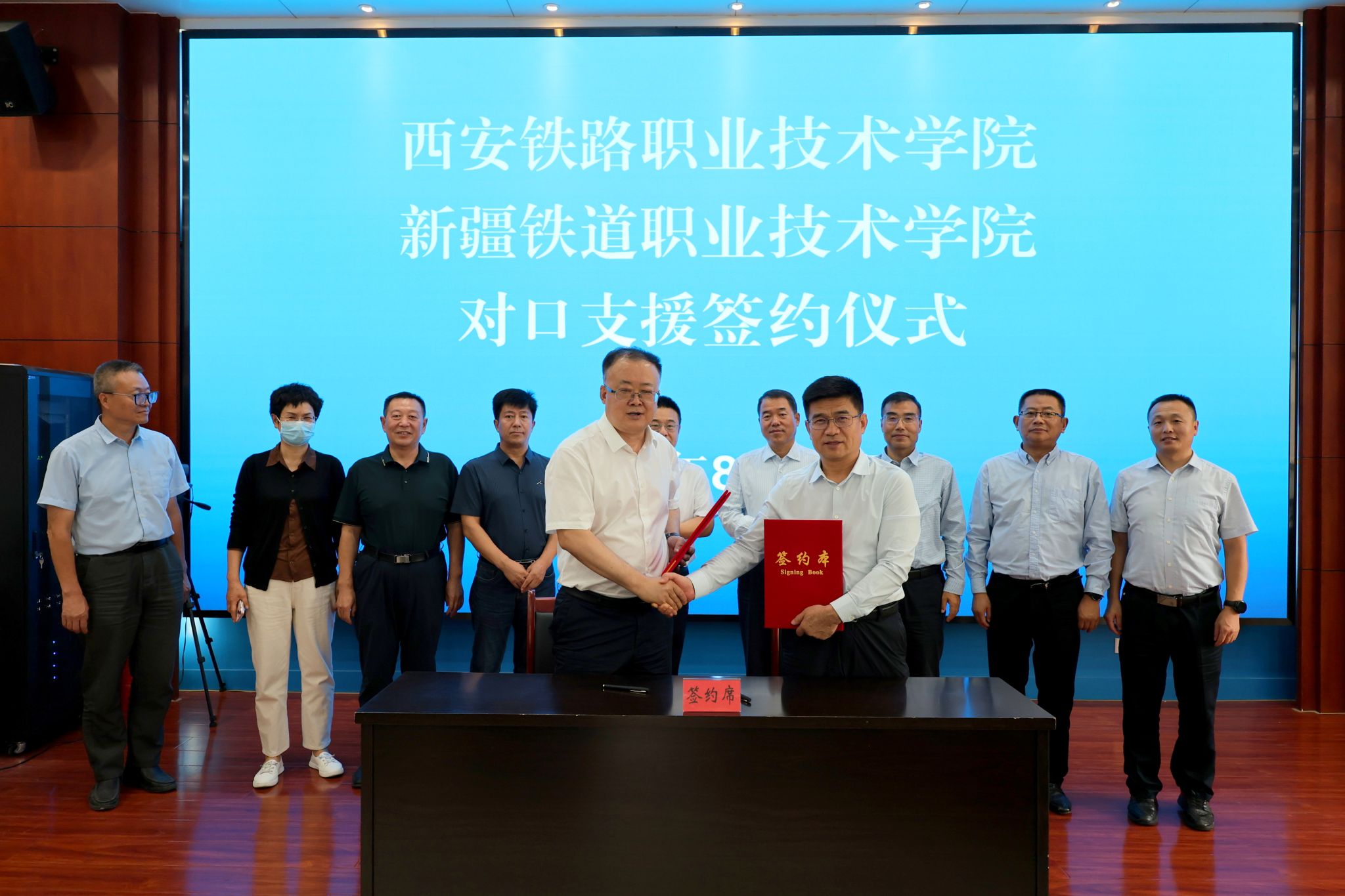 为响应国家号召,进一步深化校际合作,8月20日,学院院长赵春平,副院长安学武、滕勇,党政办公室主任张爱民、就业指导中心(校企合作处)处长张治平等一行赴新疆铁道职业技术学院调研交流并签订对口支援协议。