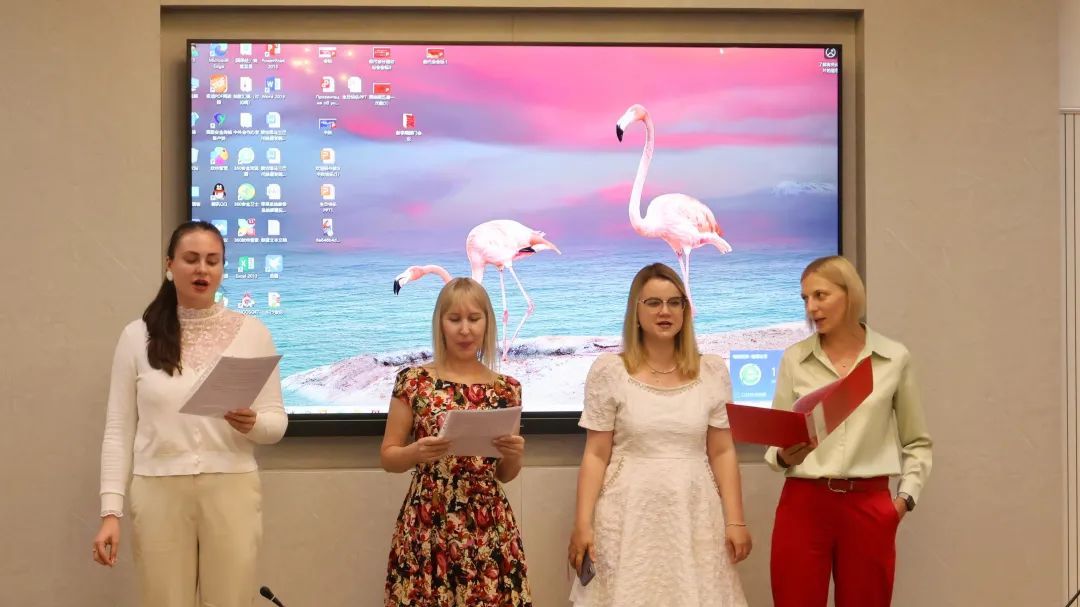 活动伊始,由贝博官网外籍教师娜思佳、拉里萨、阿丽娜、薇拉等四位教师依次进行自我介绍。每位外籍教师用简短的语言介绍自己的姓名、国籍、教学科目等基本信息,以及在中国生活的感受和对中秋佳节的认识。贝博官网四名学生代表依次发言,他们分别从学习俄语的收获、课堂体验等方面分享自己的感受,对外教的辛勤付出表示感谢,并送上中秋祝福。