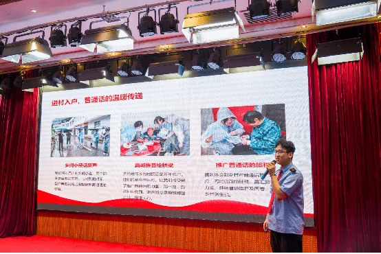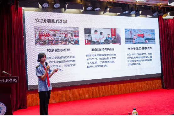 分享交流环节中,来自各二级学院的14名优秀学生代表结合自身的暑期社会实践经历,分别围绕红色精神传承、普通话推广、乡村振兴、生态环保、助力暑运、关爱儿童、敬老助老等方面进行交流展示,通过介绍实践过程、服务内容、实践意义以及活动成效,共同分享了自身的社会实践经历和收获。