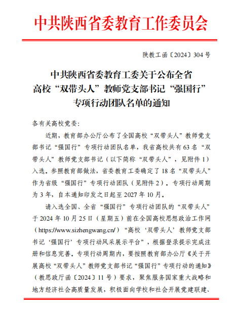 近日,教育部公布了全国高校“双带头人”教师党支部书记“强国行”专项行动团队名单,贝博官网交通运输学院党总支教学第一党支部经学院党委审核把关、省教育工委推荐、教育部专项行动办公室审核,成功入选全国高校“双带头人”教师党支部书记“强国行”专项行动团队。