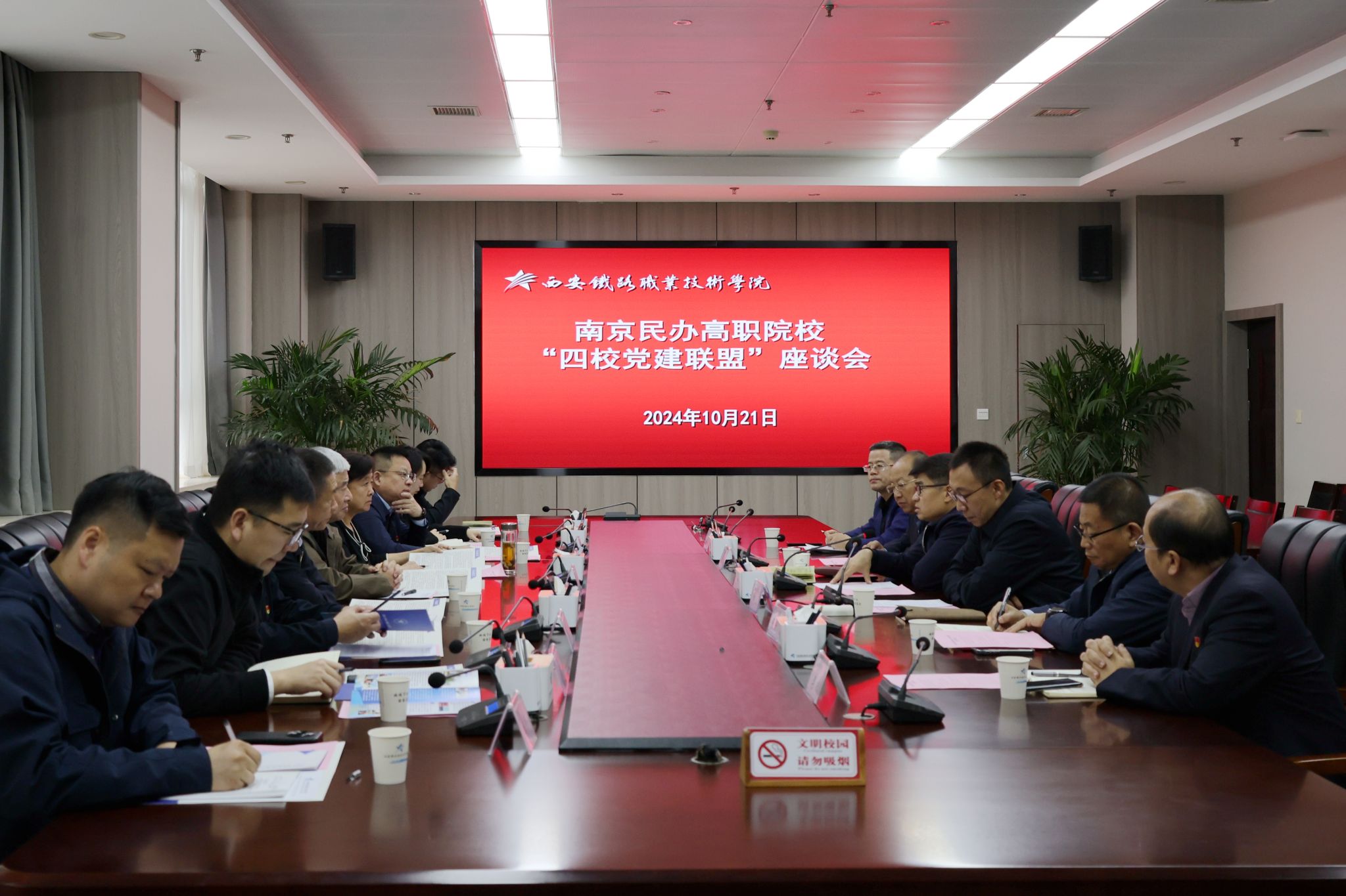 10月21日,南京民办高职院校“四校党建联盟”一行9人来贝博官网调研交流党建工作,学院党委书记赵春平、党委副书记、纪委书记邓轩,党委副书记任治军出席座谈会,党政办公室、党委组织部、党委学工部负责人陪同调研。