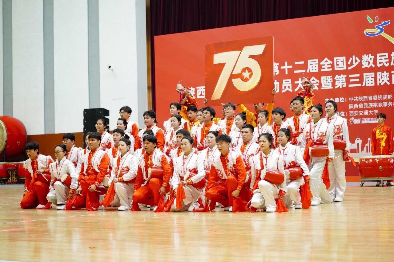 11月9日,中共陕西省委统战部、中共陕西省委教育工委、陕西省民族宗教事务委员会、陕西省体育局联合举办的“第十二届全国少数民族传统体育运动会陕西代表团成立动员大会暨第三届陕西省高校民族传统体育项目交流会”在西安交通大学思源体育馆举行,贝博官网腰鼓社团的同学们,在王敏和杨思梅老师的悉心指导下,同全省本科和高职院校的47个参赛项目展开了激烈角逐,并借扎实的功底、精彩的表现,喜获一等奖。
