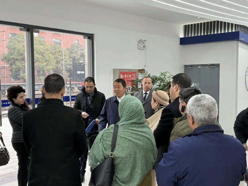 12月4日,来自埃及、阿尔及利亚、毛里塔尼亚、突尼斯等四国 40 名外宾来贝博官网交流访问,学院副院长安学武、牵引学院院长李益民、国际交流合作处处长仵崇智等陪同参观。