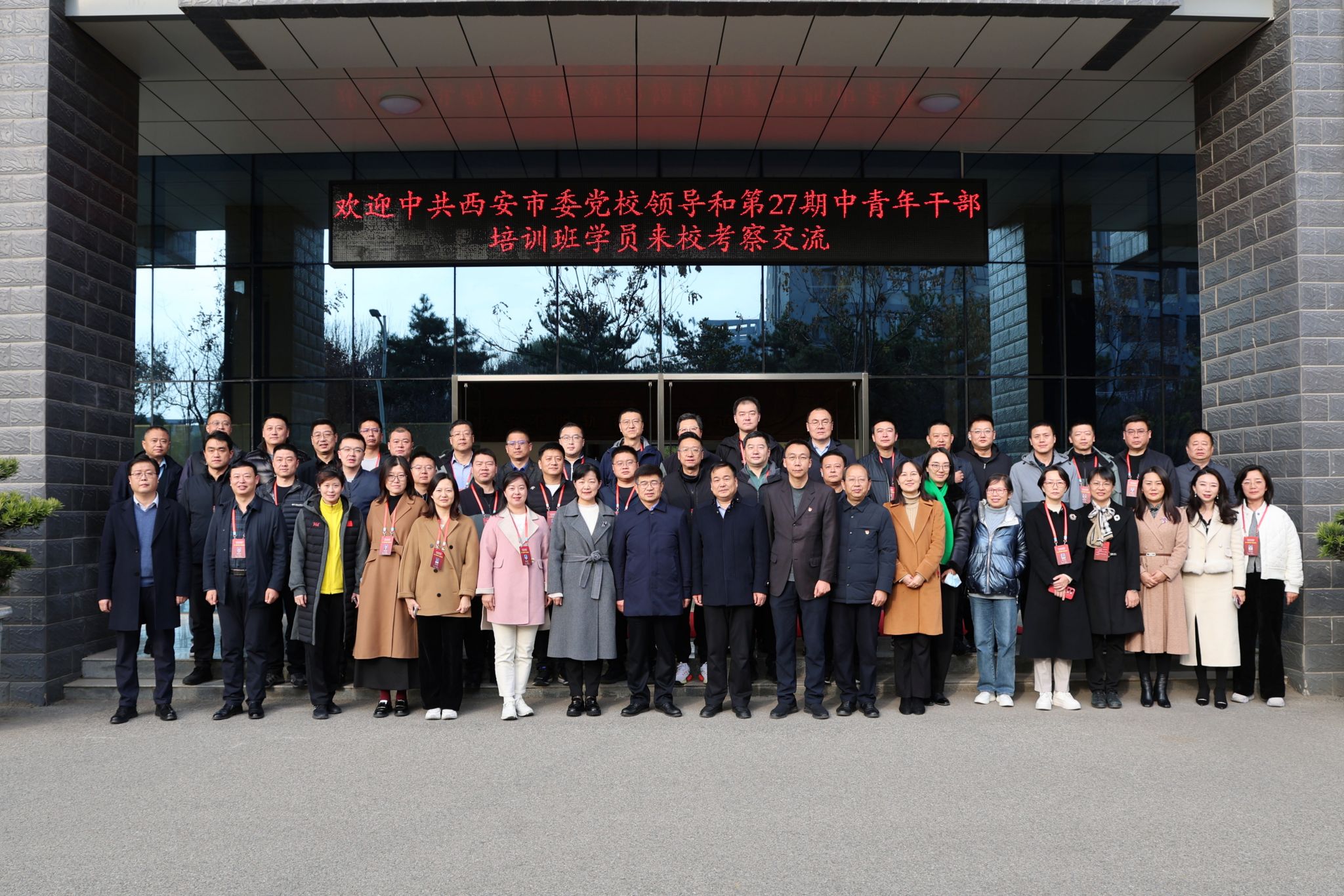 12月6日下午,西安市委党校副校长孙新朝一行7人及第27期中青年干部培训班48名学员来贝博官网参观调研。学院党委书记赵春平,党委副书记、纪委书记邓轩,党委副书记任治军、副院长滕勇陪同调研。