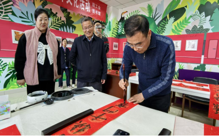 活动中,滕勇、毛卫军、王树、马建萍、周文博、王唯燕、张光华等老师以及书法名师李铭、国际交通学院外籍教师及学生书画社代表现场挥毫泼墨,或笔走龙蛇、气势磅礴,或细腻温婉、韵味悠长,在热闹祥和的氛围中,一幅幅寓意吉祥、带着美好祝福的春联呈现在大家面前,现场为师生们送出了近200副春联和“福”字。