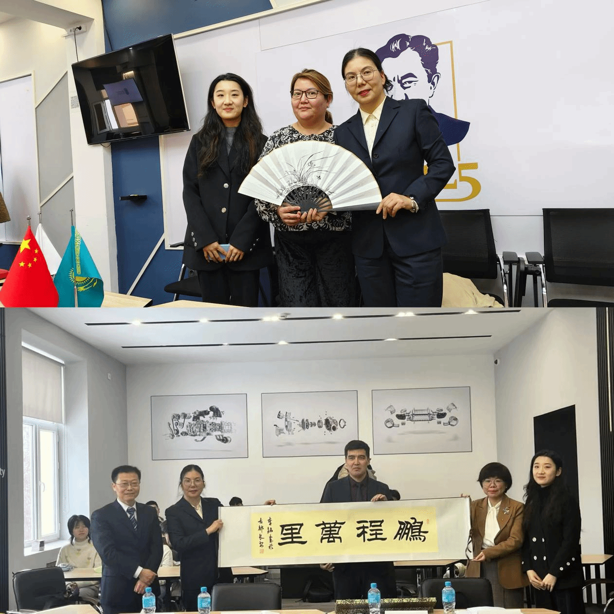 2025年3月11日至3月14日,国际交通学院副院长靳丽君、牵引动力学院副院长林辉、交通运输学院高铁乘务专业带头人史歌、国际交通学院青年教师张媛璘一行4人圆满完成对哈萨克斯坦萨特巴耶夫大学为期四天的学术交流活动。