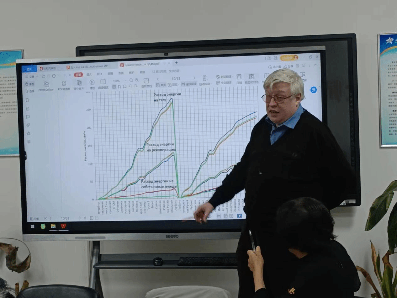 在与牵引动力学院团队进行的座谈研讨中,中俄双方专家共同讨论了合作办学铁道机车专业人才培养方案的课程设置及培养目标。亚历山大作了三种不同型号电力机车运行实验对比的学术报告,双方交流了同步电机技术在中俄两国的发展情况。在机电工程学院亚历山大参观了实训室。通过此项活动,中俄两校互学互鉴,增进了友谊,师生们开阔了国际视野。今后两校在课程共建、专业建设、人才培养方案等方面将开展更深入的合作。