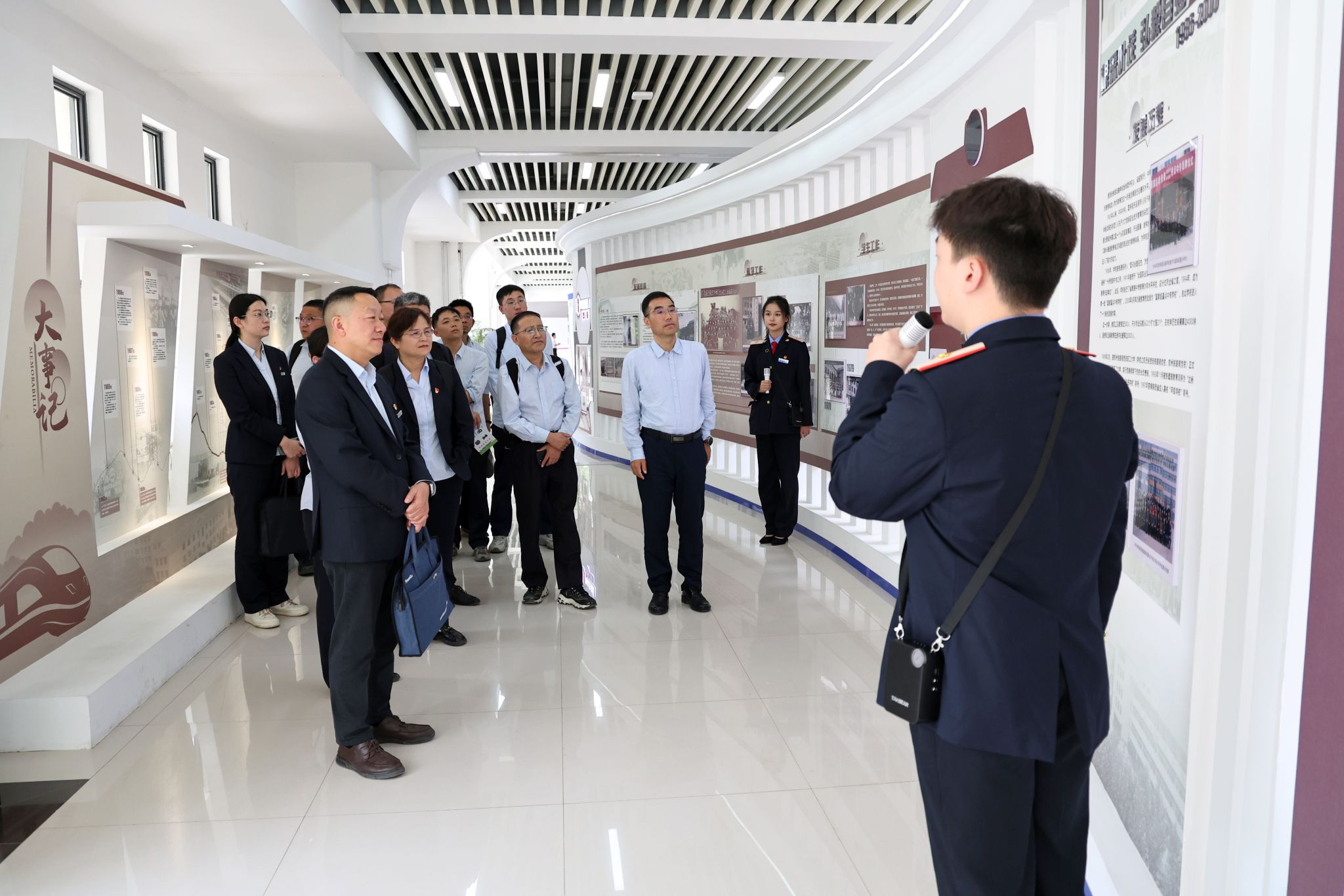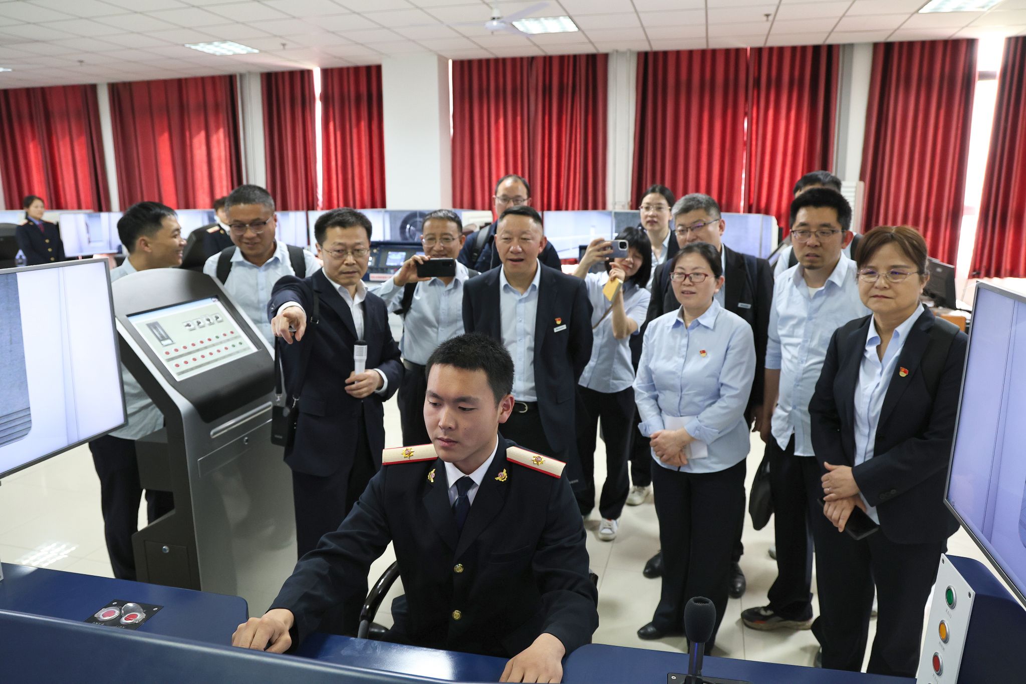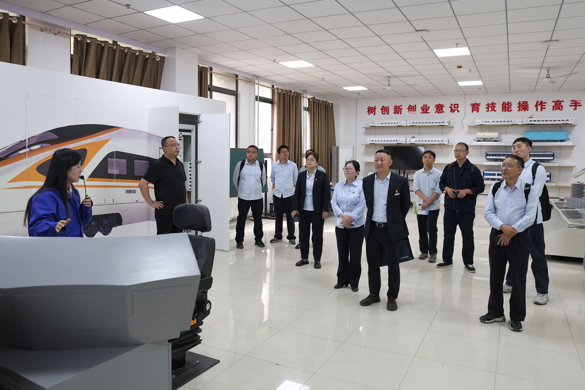 毛希勇一行实地参观了校史馆,重点考察了轨道交通专业综合实训中心和轨道交通专业综合实训室外站场、牵引动力学院实训基地和机电工程学院实训基地,现场观摩高铁模拟驾驶、机车整车实训系统等先进教学设备的操作使用情况。相关二级学院详细介绍了实训基地在数字化教学、安全管控及新技术应用等方面的实践成果,来宾对贝博官网产教融合的硬件设施和教学水平给予高度评价。