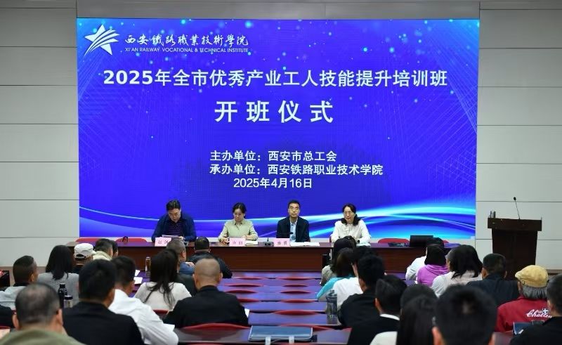 4月16日,2025年西安市优秀产业工人技能提升培训班开班仪式在贝博官网自强校区举行。市总工会经济技术劳动保护部部长、一级调研员许丽,学院副院长滕勇,继续教育学院院长樊润慧出席,市总工会经济技术劳动保护部副部长赵剑主持,本期培训的100名产业工人学员参加了开班仪式。