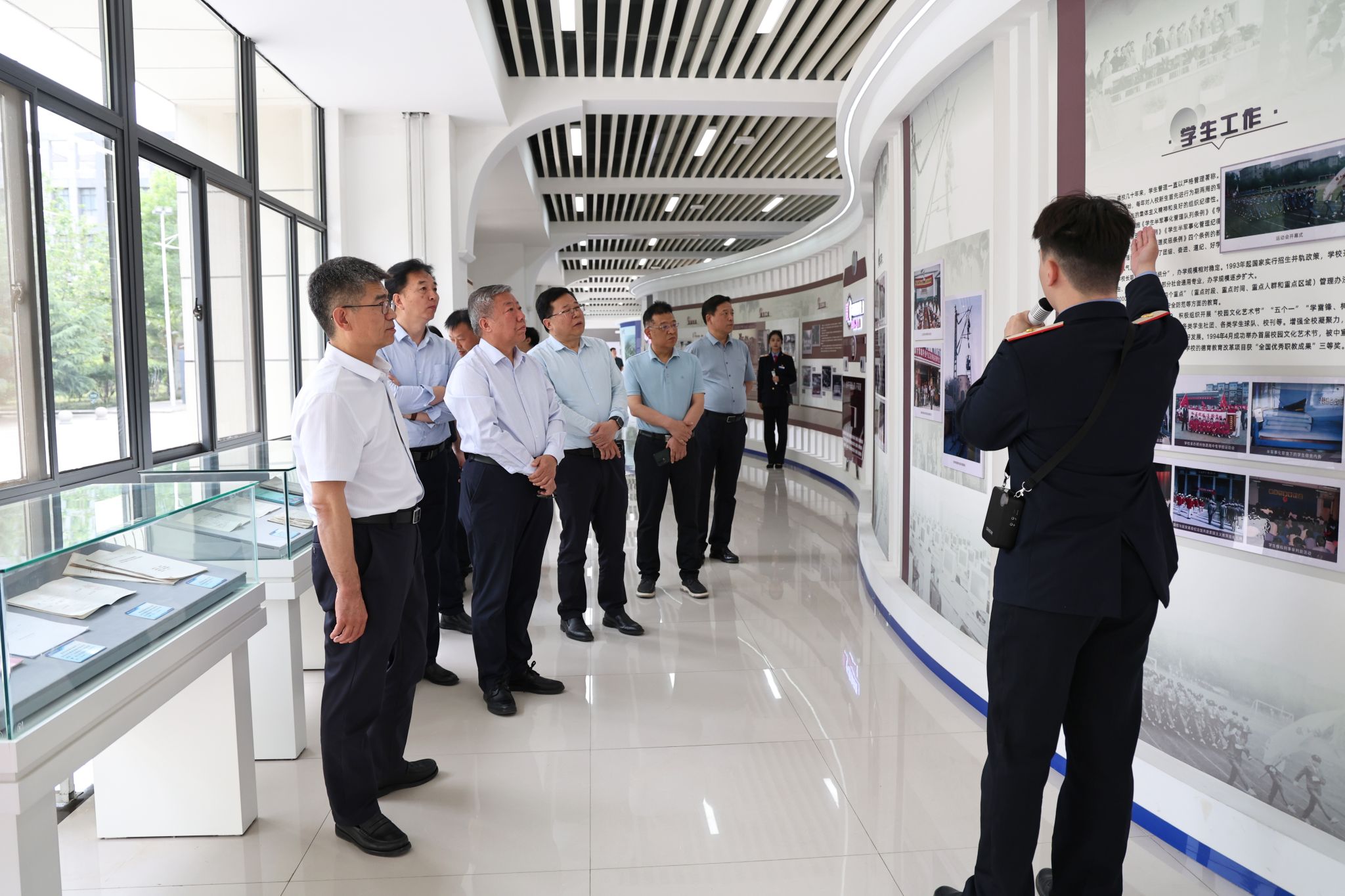 调研组一行参观了校史馆、轨道交通专业综合实训室外站场、“一站式”学生社区等。随后重点对学院食堂进行调研,并开展座谈交流。