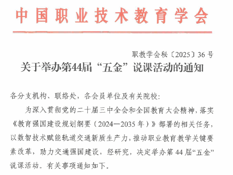 自2025年4月接到中国职业技术教育学会《关于征集轨道交通“五金”说课活动案例的通知》(职教学会秘〔2025〕11号)开始,教务处高度重视,以此为学院“双高”建设成效、推动人工智能深度融入轨道交通人才培养的重要契机,立即开展案例征集相关工作,确保申报工作的高效率开展与高质量产出。在深度解读文件的基础上,精准把握“聚焦‘五金’新基建,助力轨道交通全场景智慧化转型升级”的活动主题,以及“新质生产力、人工智能、‘五金’新基建”的核心关键词,并据此下发了《ballBET贝博BB艾弗森关于征集轨道交通“五金”说课活动案例的通知》。为压实责任,教务处对申报工作进行了科学规划,要求拥有省级专业群的3个教学院部必须在“说专业、说课程、说专业群、说教材、说实践基地”五个方面均至少申报1个案例;其他院部则需在五个方面中选择其中四个方面进行申报,同样每个方面至少1项。这一策略有效激发了各院部的积极性,最终教务处共收到全院教师提交的申报材料31份,覆盖了全部五个征集类别,形成了优秀的申报基础。不仅充分展示了学院在教育教学改革前沿的探索成果,更彰显了学院在全国轨道交通职业教育领域的实力与影响力。这份亮眼成绩单的背后,是学院教务处精心组织、周密部署和全院教师共同努力的结晶。