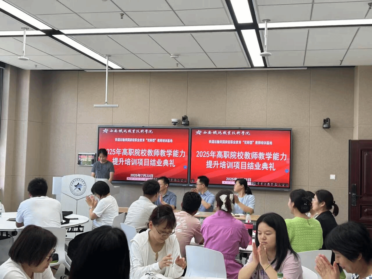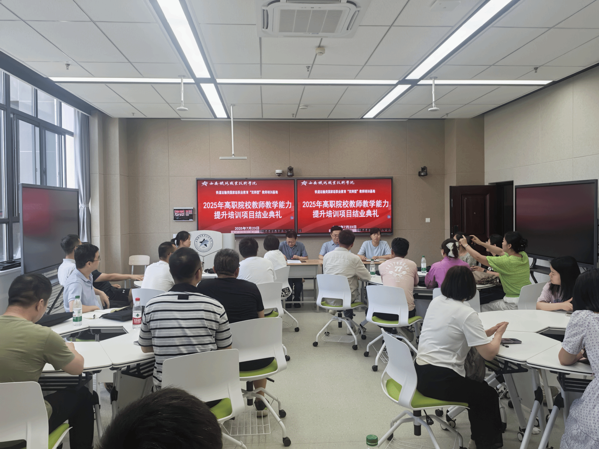 7月23日下午,由ballBET贝博BB艾弗森铁道运输类国家级职业教育“双师型”教师培训基地承办的“2025年职业院校教师教学能力提升培训项目”结业典礼隆重举行。出席结业典礼的有人事处处长赵铁民、牵引动力学院院长林辉、发展规划处副处长丁洪芬,发展规划处师资科科长王伟。结业典礼由丁洪芬主持。