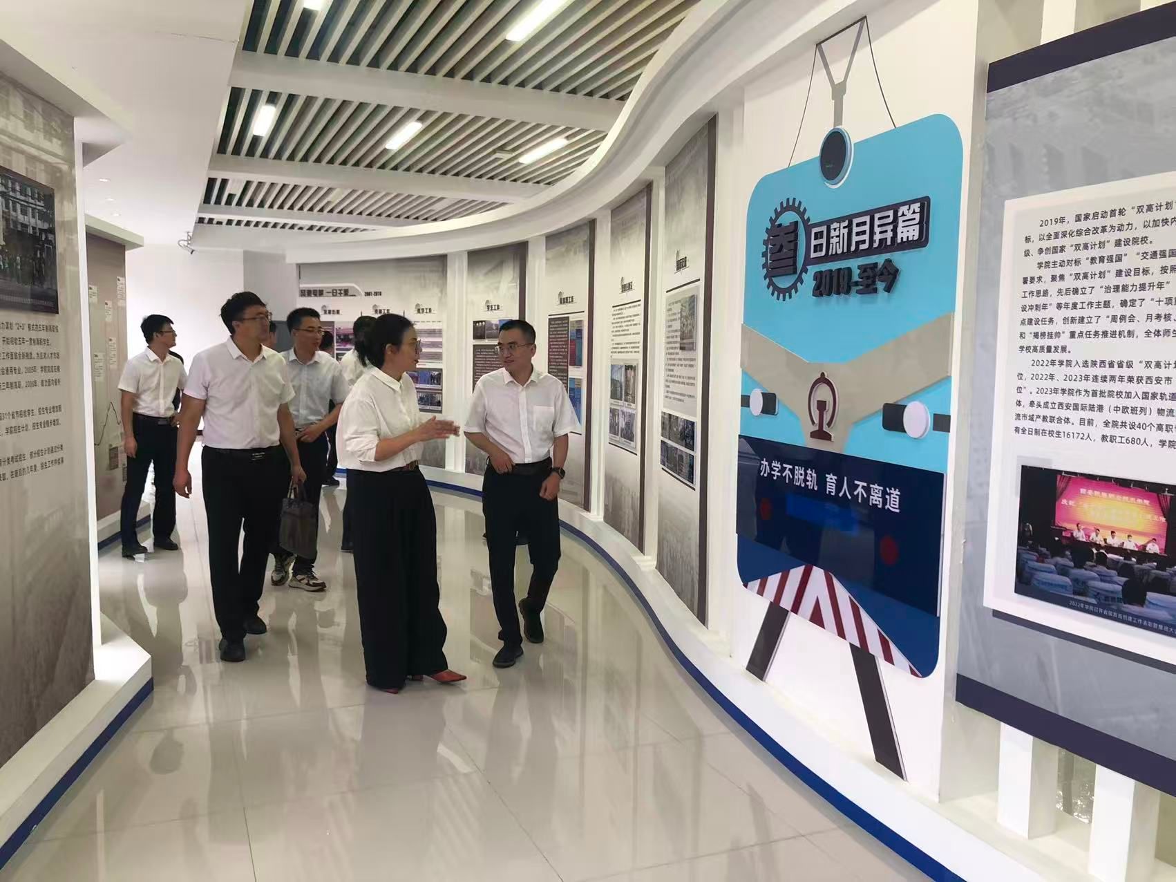 赵宝刚一行在靳丽君、黄凯等陪同下,先后参观了未来教育科技创新基地、牵引动力学院实训基地及机电工程学院创新工作室。实地考察了国家级虚拟仿真实训基地、地铁及高铁模拟驾驶实训中心等设施,对学院在轨道交通领域的高水平实训能力给予高度评价。
