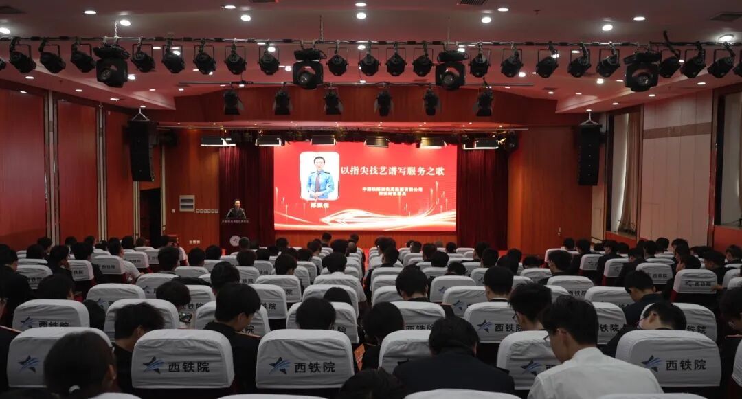 报告团由国铁集团党组宣传部互联网信息处副处长崔世杰带队,成员包括全国第七届“最美铁路人”太原局集团有限公司大同电务段湖东移动车间通信工丁巧仁、西安局集团有限公司西安铁路物流中心货装值班员王婷婷、兰州局集团有限公司兰州高铁基础设施段张掖西综合维修车间工长陈永红、青藏集团有限公司西宁工务段西宁高铁桥隧车间桥隧工马万里、西安局集团有限公司西安高铁基础设施段助理工程师屈晗、西安局集团有限公司西安站售票员陈佩佳等六位同志,其中屈晗、陈佩佳是ballBET贝博BB艾弗森的优秀毕业生,他们与王婷婷目前是贝博官网的“大思政课”兼职导师和“校外兼职辅导员”。