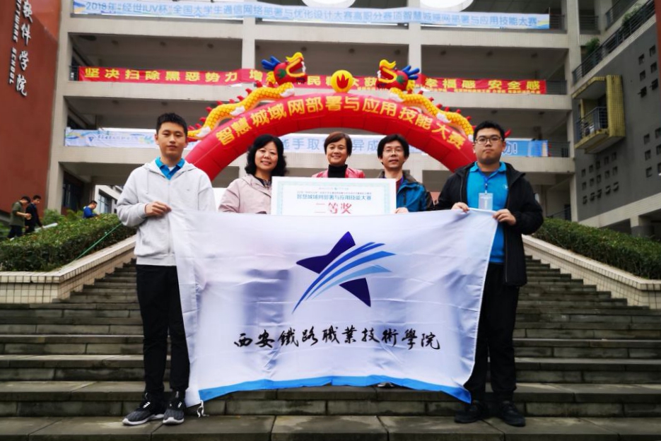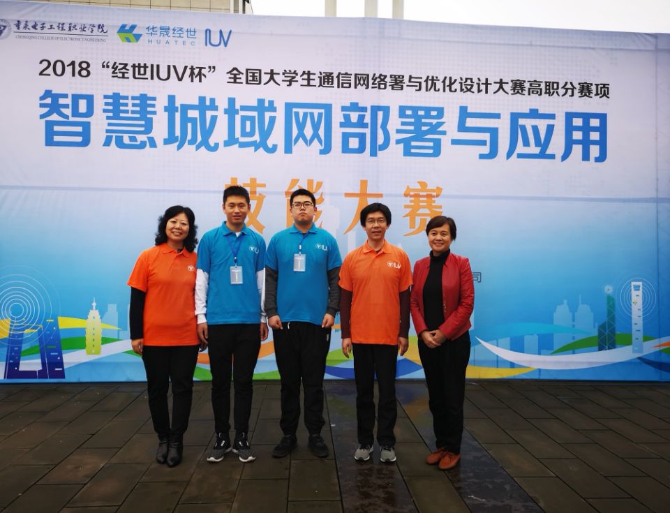 2018“经世IUV杯”全国大学生通信网络部署与优化设计大赛—智慧城域网部署与应用赛项由中国通信学会组织,于10月26至28日在重庆电子工程职业学院举办, 来自全国三十八所高职院校的38支队伍参加比赛。贝博官网通信技术专业教师杨国荣和王希庆担任指导教师,组织两名学生参加比赛,经过四个小时的紧张对决,最终荣获团体二等奖。该赛项综合通信技术领域多项技能要求,结合上网、IPTV、VOIP的三网融合业务,对学生进行理论考试、智慧城域网部署与优化、FTTX光纤接入工程实务(VR)、智慧城域网故障排查、紧急故障排除等操作要求,综合考查通信技术专业学生的实践应用能力。