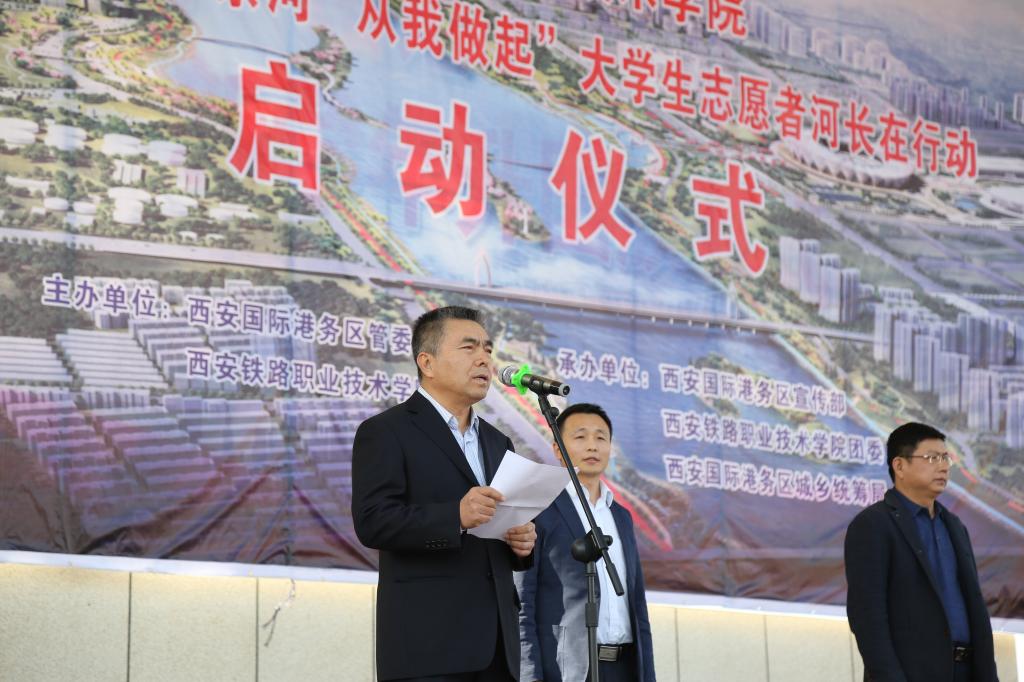 10月31日下午,贝博官网与西安国际港务区联合举办“爱护西安母亲河,从我做起”大学生志愿者河长在行动启动仪式,西安国际港务区管委会副主任李翔,贝博官网党委副书记、纪委书记黄家昌,国际港务区管委会相关干部职工以及贝博官网师生共600余人参加。启动仪式由院团委副书记张治平主持。