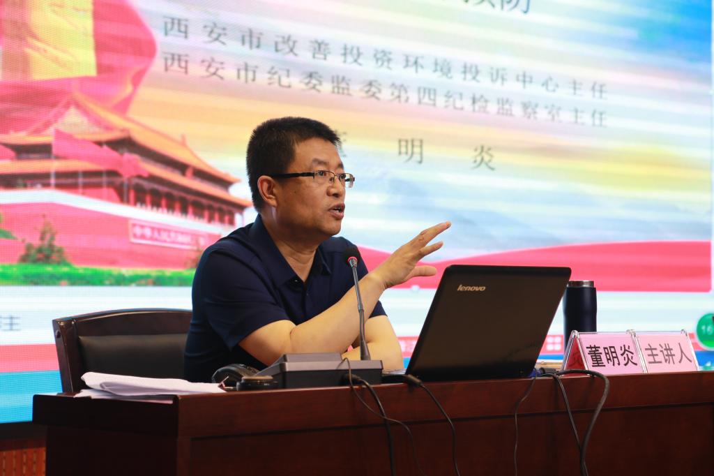 5月23日上午,学院在港务校区一楼报告厅召开党委中心组(扩大)集体学习,邀请中共西安市纪委第四纪检监察室主任董明炎作了题为《公职人员违法违纪的惩处与预防》专题讲座。学院领导班子、处科级干部和机关后勤、教研学工党员干部以及思政教科部教师、二级学院辅导员180余人聆听讲座。讲座由学院党委副书记、纪委书记黄家昌主持。