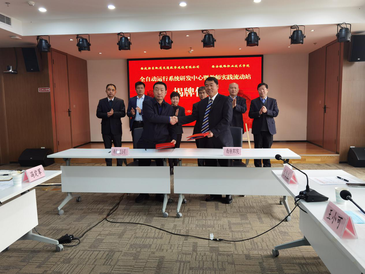 1月22日上午,贝博官网与西咸新区轨道交通投资建设有限公司就双方共同成立全自动运行系统研发中心暨教师实践流动站举行了揭牌签约仪式。出席此次仪式的领导有西咸新区管委会副主任李肇娥,西咸新区轨道交通投资建设有限公司董事长张建军,副总工程师何宗文,以及相关部门负责人,贝博官网院长赵春平,副院长安学武,以及相关部门负责人和骨干教师代表等。揭牌仪式在沣东产业园西咸新区轨道交通投资建设有限公司多媒体会议室举行,由公司副总工程师陈侃主持。