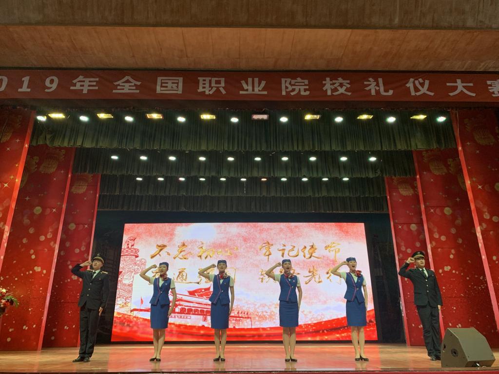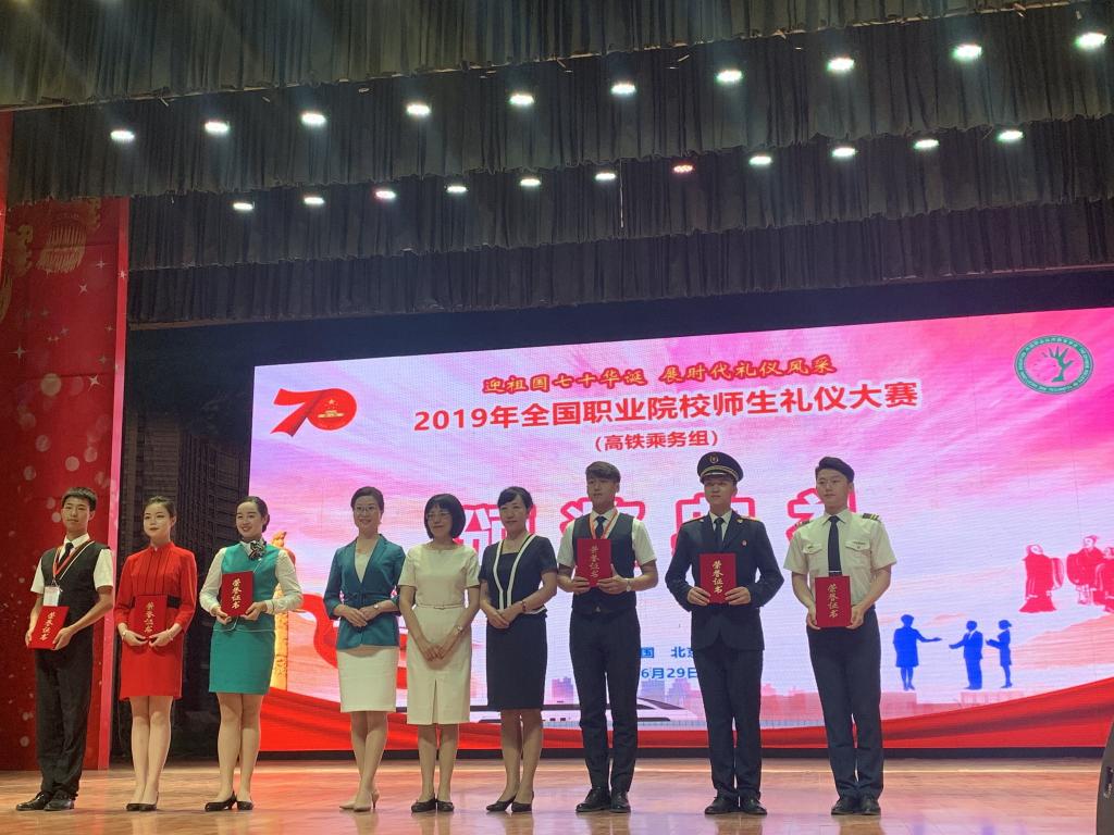 在6月29日至6月30日举办的2019年全国职业院校师生礼仪大赛(高铁乘务组)中,贝博官网代表队斩获礼仪情景剧一等奖第一名,礼仪操二等奖第一名,团体项目三等奖的殊荣;代茹媛同学获得礼仪演讲比赛和职业仪态展示两项三等奖,王欣怡同学获得礼仪演讲比赛三等奖;刘峥、田乐老师荣获“优秀指导教师”称号。