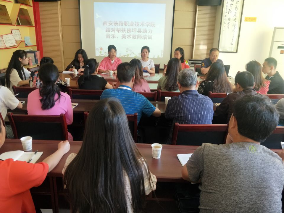 佛坪县是陕西省教育厅指定贝博官网对口实施精准扶贫定点帮扶单位。自2017年贝博官网承担结对帮扶工作以来,充分发挥高校人才智力优势,心理健康咨询中心的建立、啦啦操培训、心理健康培训等项目已顺利开展,效果显著。应佛坪县教育体育局的要求,在贝博官网和佛坪县的共同协作下,全县中小学音乐、美术教师培训于7月10日—7月12日在佛坪县青少年校外活动中心顺利进行。