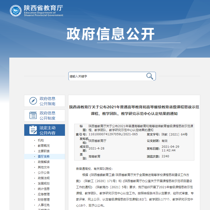 据悉,此次评选根据《陕西省委教育工委 陕西省教育厅关于全面推进高等学校课程思政建设工作方案》(陕教工〔2020〕171号)和《陕西省教育厅办公室关于开展课程思政示范项目建设工作的通知》(陕教高办〔2021〕5号)要求,学院按照申报条件提交资料,经省厅形式审查、专家评审、网上公示等评选流程,最终在全省范围内共计认定省级课程思政示范课程182门,贝博官网《计算机应用基础》课程位列继续教育类获奖团队之列。
