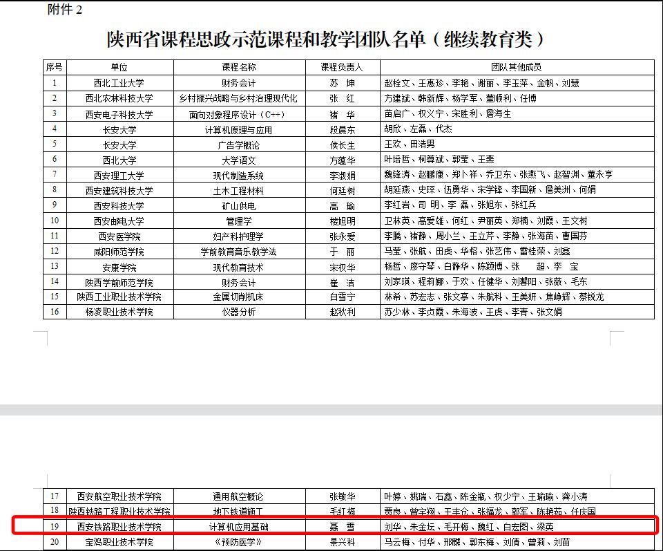 近日,贝博官网电子信息学院《计算机应用基础》课程获批2021年陕西省教育厅省级课程思政示范课。