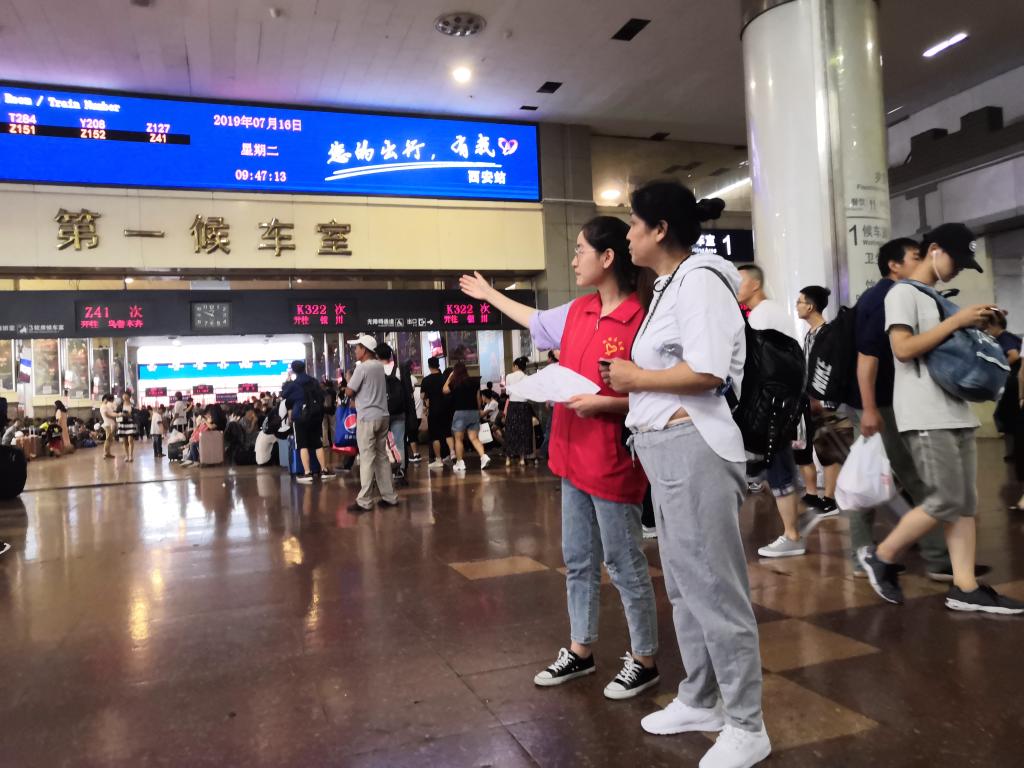 6月份,院团委在全院范围内选拔了综合素质较高的170名志愿者,分为三支队伍分别服务于西安站、西安北站与西安地铁。西安站与西安北站的40名志愿者于7月16日正式上岗,西安地铁的130名志愿者于7月22日正式上岗。同学们牺牲暑期休息时间,克服酷热,根据分配的岗位认真负责的做好进出站引导、配合站台检票、配合安检、车次查询、购退票咨询、帮助、引导乘客正确使用自动售、取票机、秩序维护、便民利民和帮扶重点旅客等志愿服务工作。在40余天的助力暑运志愿服务活动中,志愿者们根据所在站点的工作安排分组上岗,平均每天服务时长达7小时,整个暑期志愿服务活动中,贝博官网170名志愿者共计服务时长达6654余小时,累计服务旅客约300万人次。期间,西安火车站的志愿者们还参加了2019年陕西省西部计划志愿者援疆、援藏项目服务队出征仪式的志愿服务工作。