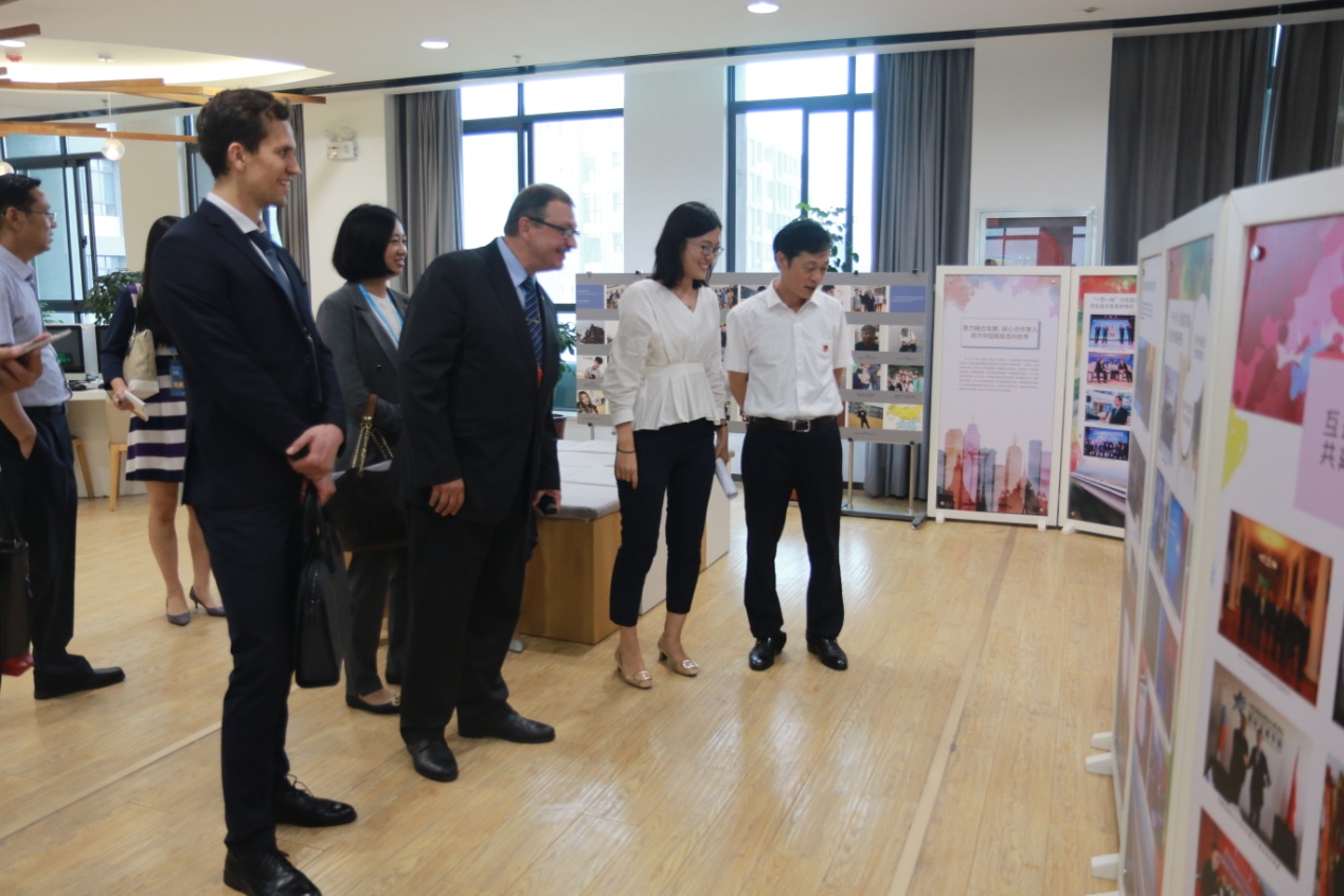 9月10日下午,上海合作组织大使团代表,俄罗斯驻华大使馆参赞卢基扬采夫和参赞助理波德列什耶夫、吉尔吉斯斯坦驻华大使馆参赞科若别科娃来贝博官网参观考察。学院党委书记施利民,副院长赵六杰会见了考察团一行,国际交流与合作处处长赵景民、副处长韩发强等陪同。