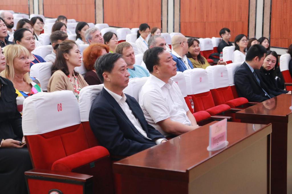 在阶梯教室,党委书记施利民会见了全体代表,并代表全校师生欢迎代表团的到来,副院长赵六杰主持见面会并致词。随后,代表团中来自韩国、吉尔吉斯斯坦、芬兰、尼泊尔、瑞典、希腊、加拿大、澳大利亚、俄罗斯等10多个国家的友好城市及友好交流城市代表约50名外宾共同观看了贝博官网的宣传片。