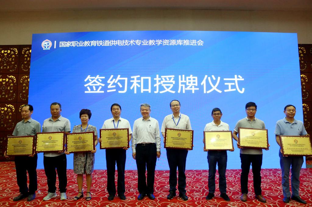 会议开幕式上,广州铁路职业技术学院院长马仁听、中国医学科学院基础医学研究所党委书记(原广州铁职院党委书记)雷忠良、郑州铁职院副院长董黎生、广州市教育局副调研员梁立丹等领导先后致辞,回顾了资源库前期申报、立项过程的艰辛,以及立项建设的重要意义,同时强调各联建单位要站在历史的高度、葆有专业情怀、强化大局意识、担当责任、加强协作,依托资源库项目打造一批特色鲜明的“金课”,成长一批敬业爱岗的双师型教师,孕育一批可推广的教学成果,为“交通强国、铁路先行”擦亮中国高铁名片。开幕式后,资源库项目负责人——广州铁路职业技术学院党委书记张竹筠分别与8所联建单位领导签约、授牌。会议还邀请了多位专家就国家职业教育专业教学资源库建设开展了专题讲座,分享了他们在国家职业教育资源库建设过程中顶层设计、项目实施、财务管理、推广使用等方面的经验、教训和体会。会议期间,贝博官网领导、老师还与参会的专家、各校领导、专业同行们进行了广泛深入的交流。