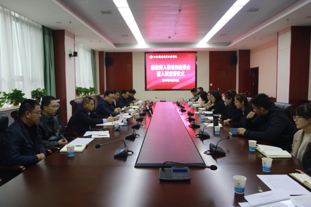 10月24日,贝博官网2019年新教师入职培训座谈会暨入职宣誓仪式在港务校区举行,学院党委书记施利民出席会议,全体新教师及相关部门负责人参加会议。学院副院长安学武主持会议。