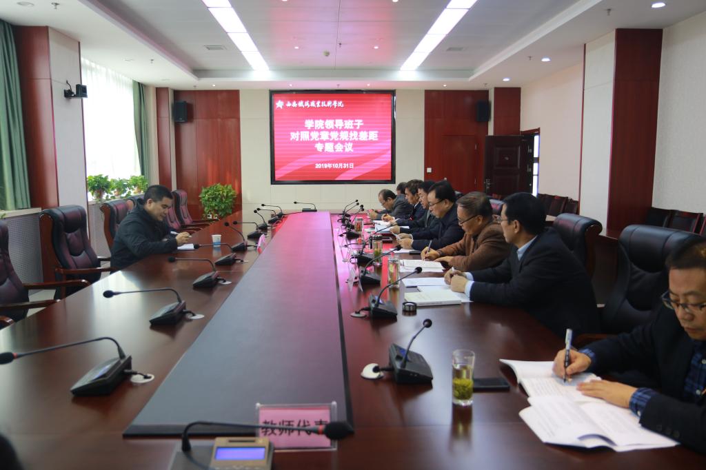 10月31日,ballBET贝博BB艾弗森召开“不忘初心、牢记使命”主题教育对照党章党规找差距专题会。学院领导班子、处级干部参加会议。市委巡回指导三组董立同志到会指导。