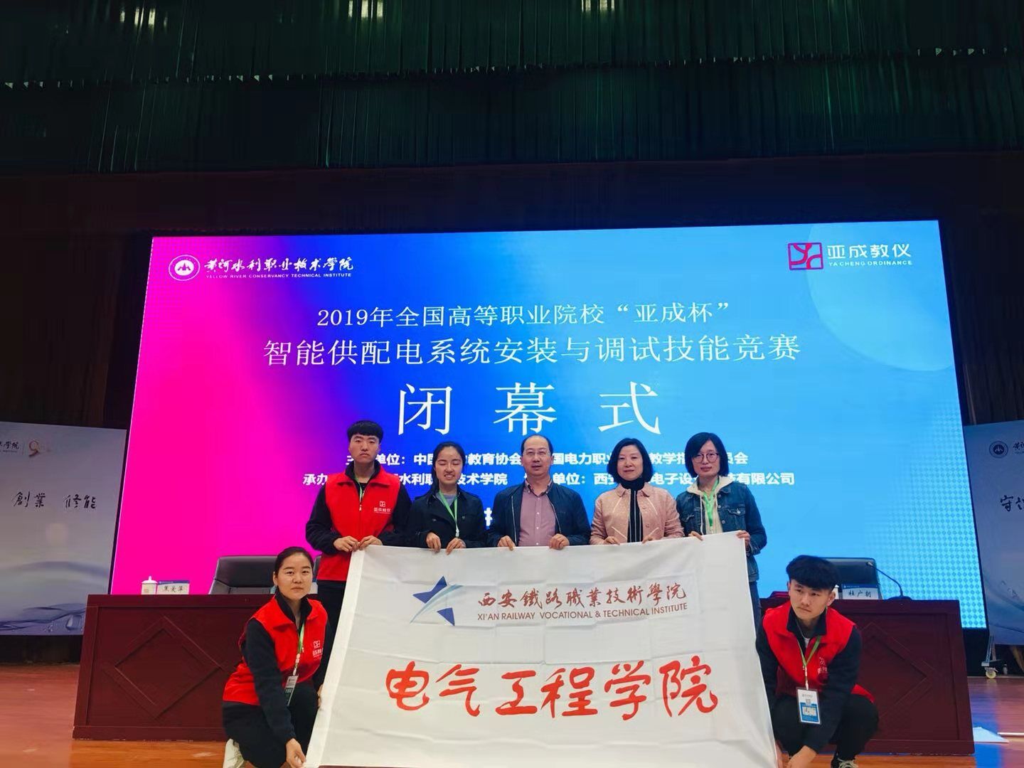 11月3日,2019年全国高等职业院校智能供配电系统安装与调试技能竞赛在黄河水利职业技术学院落下帷幕,由贝博官网供用电教研室主任方彦教授带队,王锦、吴晓凤两位指导教师及曹奕凡、胡晨晨、毛磊三位参赛选手组成的代表队在此次竞赛中发挥出色,再次荣获“一等奖”,两位指导老师获得“优秀指导教师”称号。