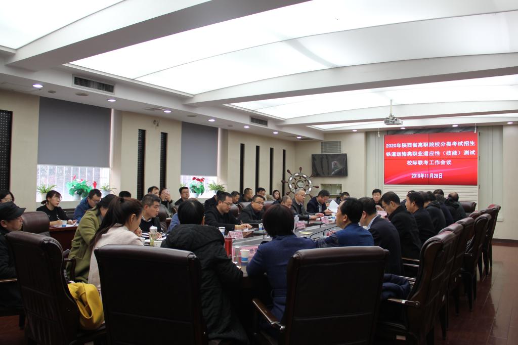 11月28日,学院在自强校区召开了2020年陕西省高职院校分类考试招生铁道运输类专业职业适应性(技能)测试机试工作会议。学院副院长安学武、教务处长滕勇、招生就业办主任夏良武、教务处副处长张刚毅及各二级学院负责人及相关专业带头人参加会议。参加会议的还有来自全省15所兄弟院校的领导和专业带头人。会议由交通运输学院院长徐小勇主持。