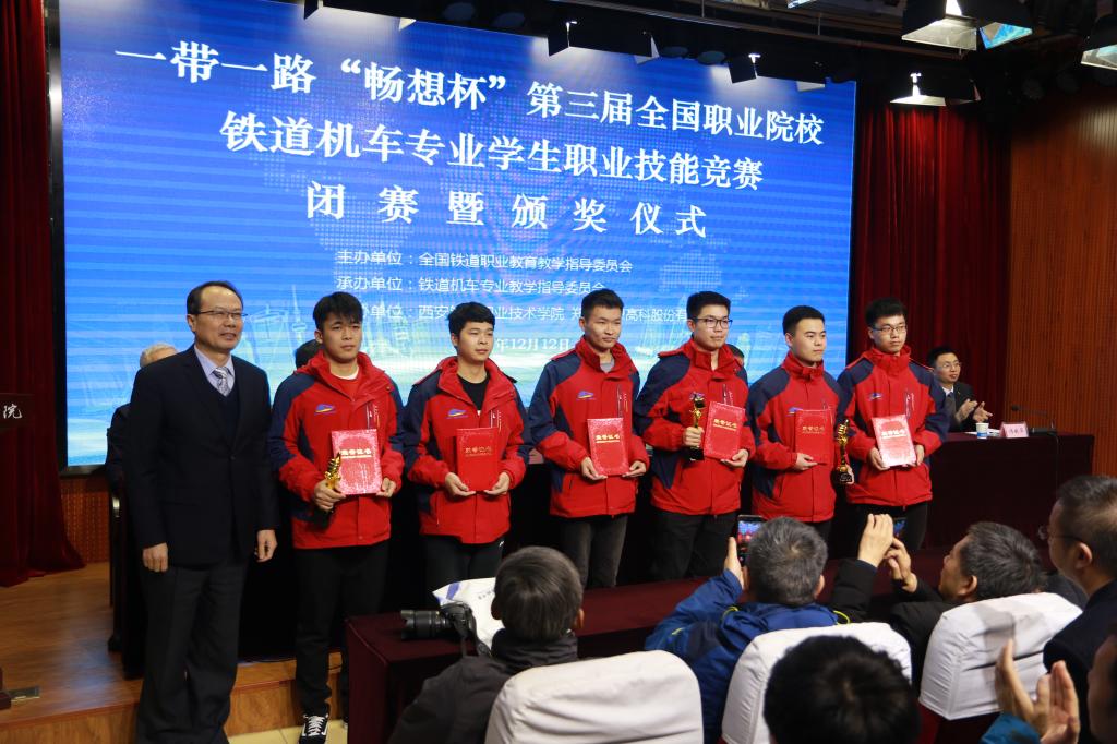 在刚刚结束的第三届全国职业院校铁道机车专业学生技能竞赛闭幕式上,ballBET贝博BB艾弗森获两个比赛项目的一等奖,并获优秀组织奖。