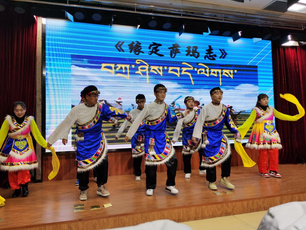 在电气工程学院学习的8名藏族同学表演了藏族舞蹈《缘定萨玛志》,他们通过民族歌舞表达了对家乡和祖国的热爱之情。