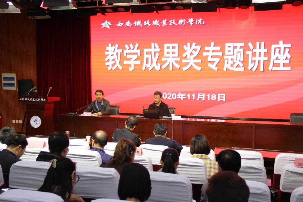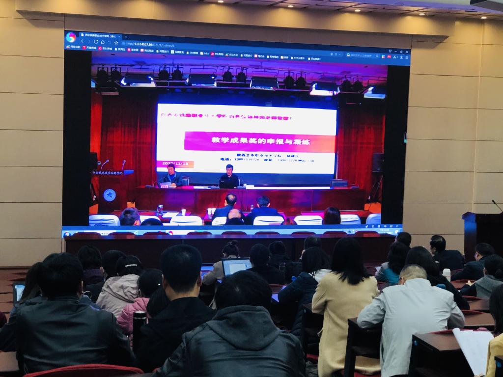 为做好教学成果奖培育工作,提升申报质量,11月18日,学院邀请了2018年度高职国家级教学成果一等奖获得者、陕西省职业技术教育学会秘书长杨建民教授作“教学成果奖申报与凝练”专题讲座。主会场设在港务校区办公楼一楼学术报告厅,自强校区、临潼校区同步收看直播。各院部院长(主任)、党总支书记、副院长、教学管理干部、专任教师及教学部门管理干部等300余人参加讲座。讲座由学院副院长安学武主持。