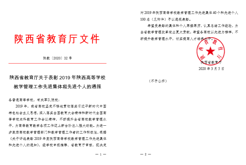据悉,陕西省教育厅共表彰2019年陕西高等学校教学管理工作先进集体40个,其中有10所高职院校获此殊荣。