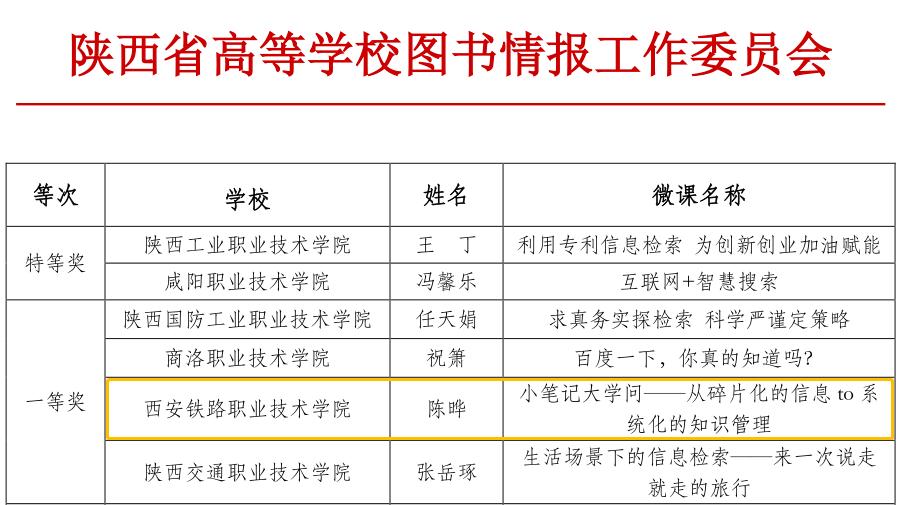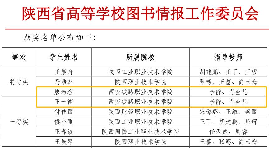 由陕西省高等学校图书情报工作委员会主办,陕西省高校图工委高职高专工作组承办,北京万方数据股份有限公司和北京方正阿帕比技术有限公司协办的2020年全国高职高专院校信息素养大赛陕西赛区比赛在咸阳职业技术学院圆满落幕,贝博官网师生在学生个人赛与教师微课赛中喜获佳绩。同时贝博官网荣获“优秀组织奖”。