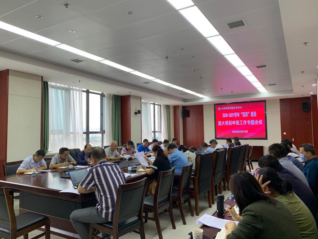 8月19日,学院在港务校区办公楼五楼第三会议室召开2020-2021学年“双高”建设重大项目申报工作专题会议,院长赵春平出席会议并讲话,党政办公室、党委组织部、宣传部、学生工作部、发展规划处、就业指导中心、教科研处、教务处等部门以及各二级院部、各专业群负责人参加了会议,会议由副院长安学武主持。