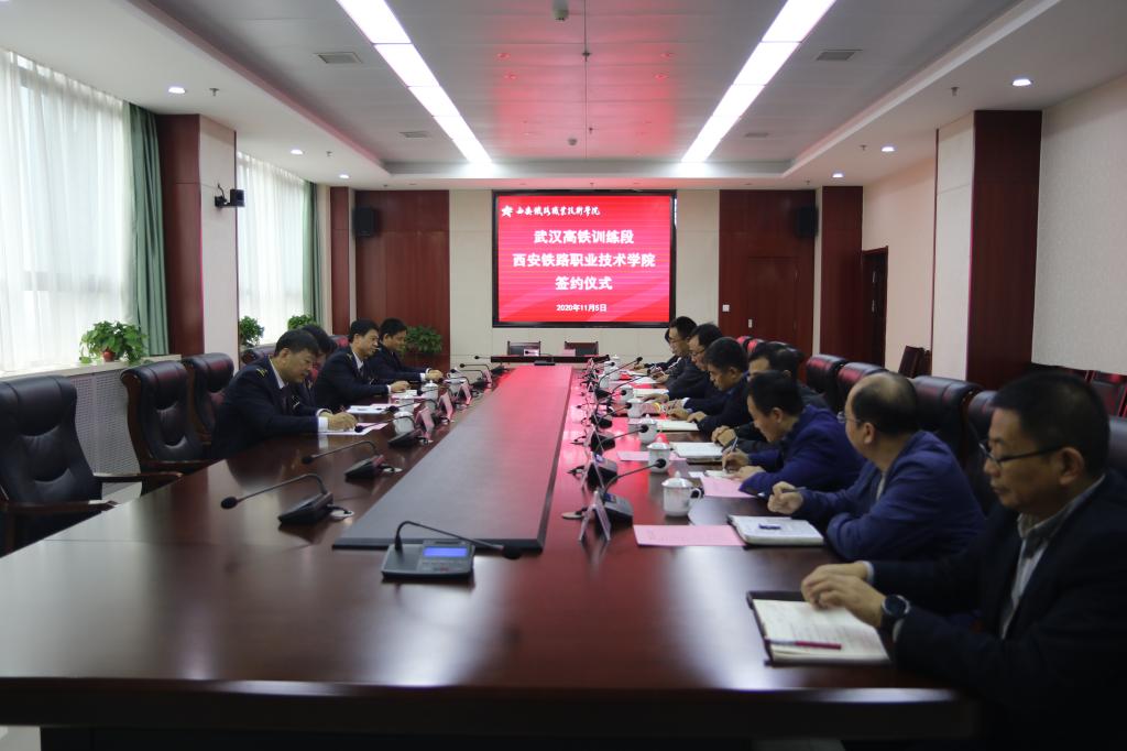 随后,学院相关处室、院部负责人与武汉高速铁路职业技能训练段副段长姚俊鹏,质量监督和认证部部长睢杰,教研部副部长郑磊等就教学资源共享、教材共建、师资共享、教师挂职锻炼、技能大赛开展、高速铁路“1+X”证书,职业技能等级证书认定等方面展开了深入的讨论,细化了协议措施,达成了共识。