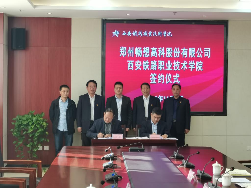 郑州畅想高科股份有限公司总经理张宪锋向学院领导表示衷心的感谢。他介绍畅想高科股份有限公司是一家专注轨道交通运用安全、教育实训领域研发、生产、销售和服务的高新技术企业,河南省重点上市后备企业,具有多年铁路运营产品开发的经验并参与制定多个铁路行业标准,充分了解铁路企业现场作业标准和技能技法,具有雄厚的技术实力和丰富的技能培训经验。张经理表示之前的两次合作也对他们企业的技术发展带来了很大促进,希望此次签订协议,双方能够发挥各自优势,深入合作,实现双赢。