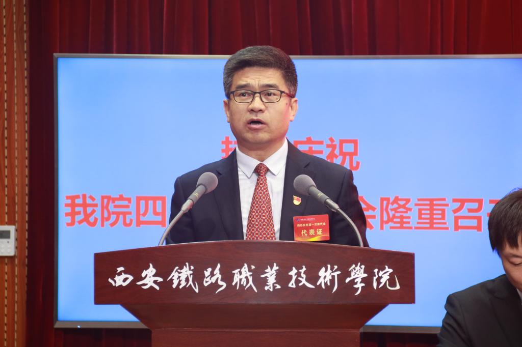 最后,院党委书记施利民讲话。他对学院四届一次教代会给予了高度评价,肯定了大会取得的成果,并围绕学院如何更好地贯彻落实大会精神提出几点意见,一是要深化政治统领,加强党的全面领导;二是要以提升能力为关键,提升办学办学治校能力;三是要发挥教代会职能,全面落实大会精神,上下一心,以优异工作成绩向建党100周年献礼。