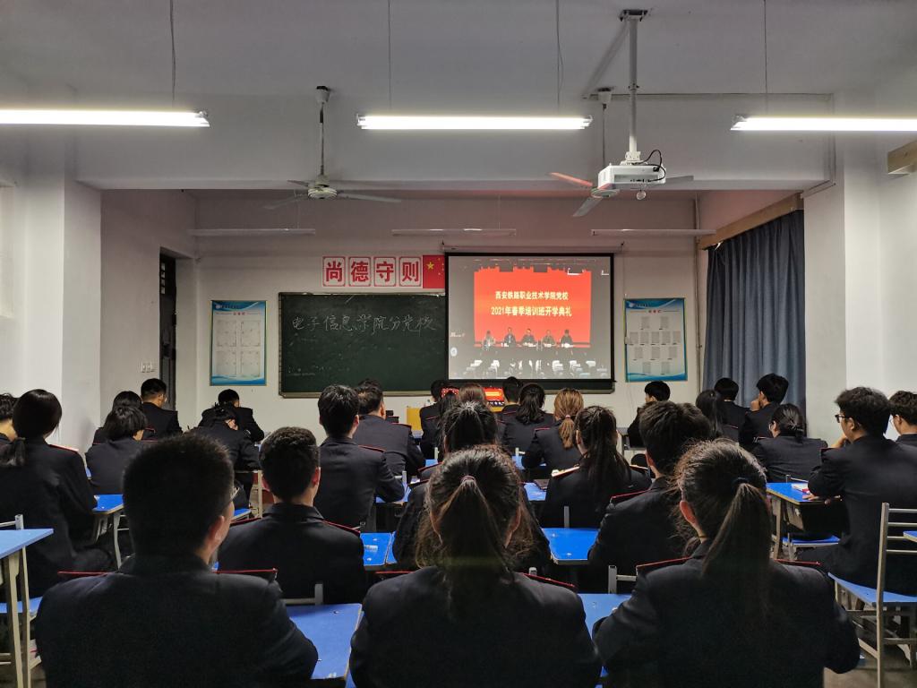 4月14日下午,学院党校2021年春季培训班开学典礼在港务校区隆重举行,自强校区、临潼校区与龙首校区进行了同步直播。学院党委副书记兼纪委书记、监察专员邓轩,学院党校校务委员会成员参加了开学典礼。