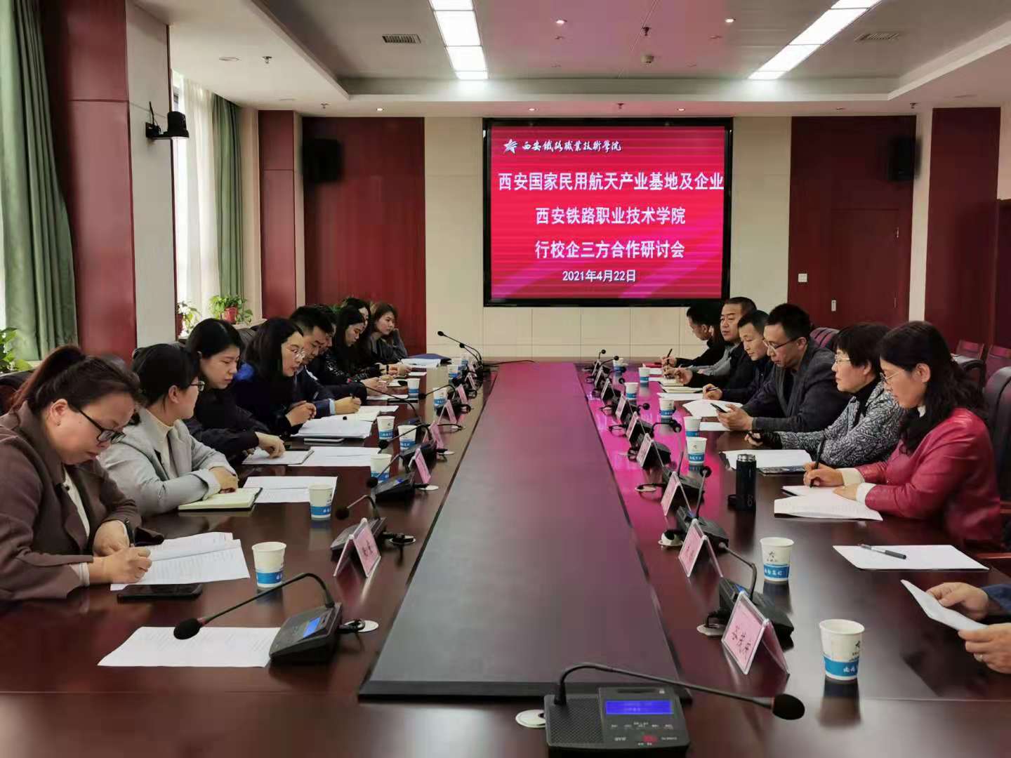 4月22日航天基地管委会人社局副局长孙丛笑,业务负责人韩建华,人才组组长李艺,招聘组组长黄冬雪及中煤航测遥感集团有限公司招聘主管冯亮,西安神西电气有限责任公司办公室主任刘瑞琪、人事主管张雯,西安铁路信号有限公司培训主管田佩,西安华信铁路技术有限公司人力资源专员巩娟,西安恒达微波技术开发有限公司行政人事部主任朱琳等一行受邀来访贝博官网,就深化校企合作项目,人才需求等工作展开交流与研讨。学院党委副书记、纪委书记邓轩,就业指导中心(校企合作处)处长张治平、电气工程学院党总支书记和晋秦、及各学院校企合作、就业工作相关人员参加研讨。会议由邓轩主持。